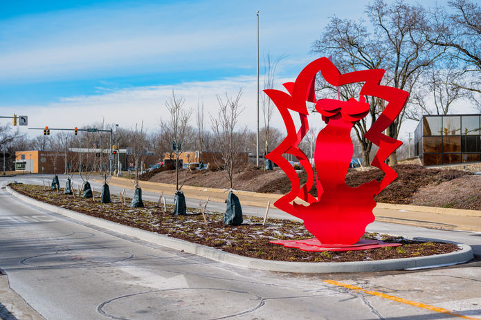 Flamenco has found a new temporary home in the median of 8th Street’s “Mill Race Park Gateway,” a collaborative streetscape improvement project that enhances connectivity between downtown and Mill Race Park. The rededication ceremony on December 14, 2023, celebrated not just the sculpture’s return, but the city’s ongoing investment in vibrant, lasting public art.